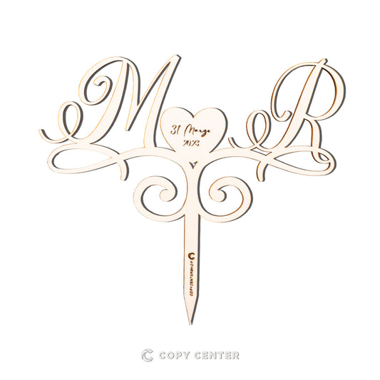 Cake Topper Matrimonio in Legno personalizzabile con iniziali e data